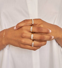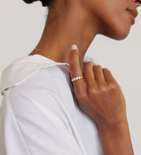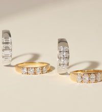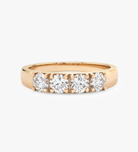 | Framed in 14k solid gold, our Diamond Tetrad features a series of four diamonds, balancing symmetry and substance. Each diamond’s facets creates depth and dimension, while an open back gallery draws in light and spotlights clarity. |