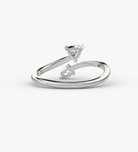 Our signature Bypass Cuff Ring couples two distinct yet complementary diamond shapes for a design that defines modern elegance. A Pear cut diamond and Trillion cut diamond are set on each end of a connected 14k solid gold band, highlighting the beauty of the other, together. Wear this remarkable ring on its own or as a romantic addition to a wedding ring stack.