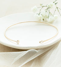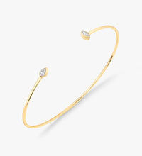 "Marquise and Pear shaped VRAI created diamonds form delicate petals on either end of a 14k solid yellow gold open cuff design perfect for stacking or wearing solo.